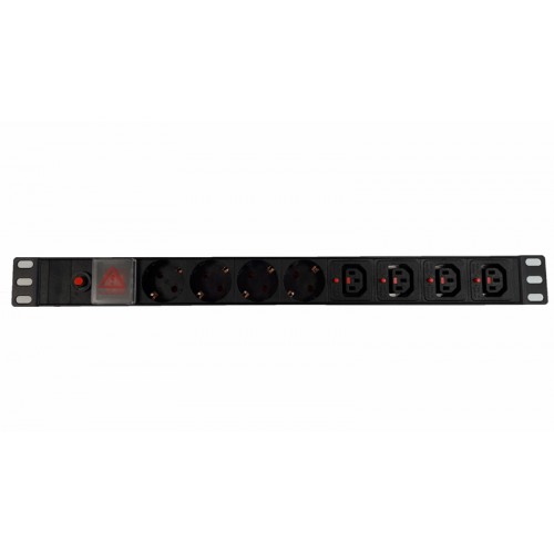 58677 Блок розеток 19, 10-16A, 8 розеток (4 шт EU + 4 шт C13), без шнура, выключатель, с защитой, корпус металл, черный