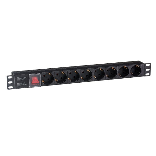 65861 Блок розеток 19, 10А, 8 розеток, без шнура, выключатель, корпус металл, чёрный