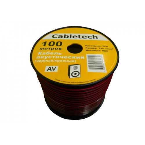 53377 Кабель акустический Cabletech 2*0.75мм2 (42*0.15мм) CCA, 100м, пластиковая катушка, черный/красный РАСПРОДАЖА