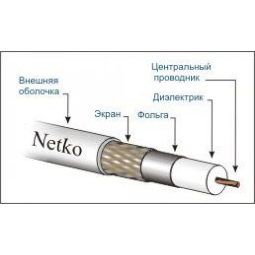 51156 Кабель коаксиальный 3C-2V Netko, 75 Ом (CU, оплетка 32 нити СU), белый (100м) РАСПРОДАЖА