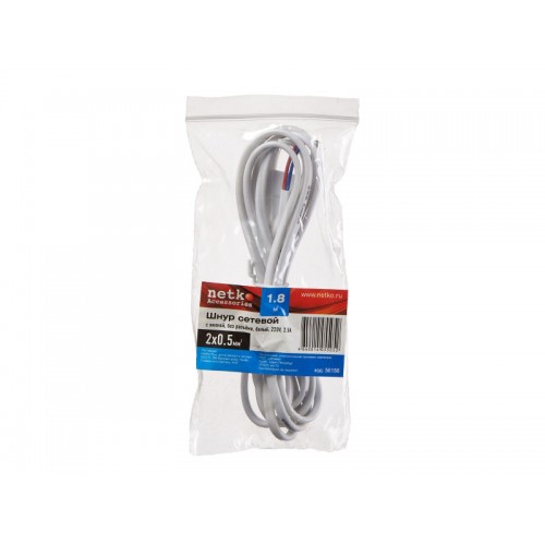 56156 Кабель питания с вилкой (без разъема) 2*0,5мм2, 220V/2,5A, 1,8м, белый, Netko