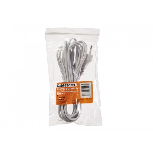 54559 Кабель питания с вилкой (без разъема) 2*0,5мм2, 220V/2,5A, 3м, белый, Cabletech РАСПРОДАЖА