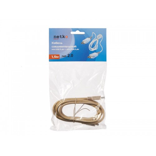 52175 Кабель шт.mini USB B - шт.mini USB B 2.0 (1,5м), серый, блистер. Netko