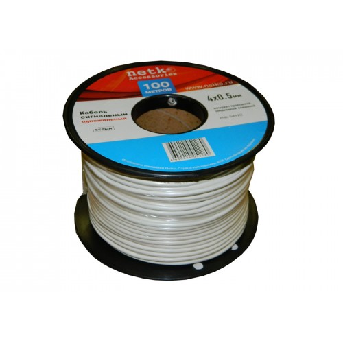 54922 Кабель сигнальный NETKO, неэкранированный 4*0.5мм 100м, пластиковая катушка, белый