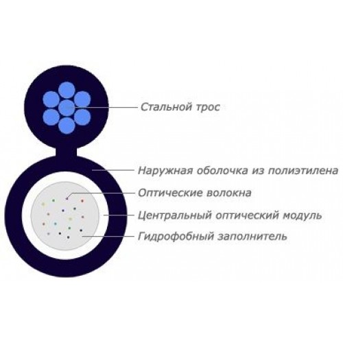 55105 Кабель волоконно-оптический 16 (SМ - 9/125), тип ОПЦ, наружный с тросом, 9 кН, PE, черный, 2000м