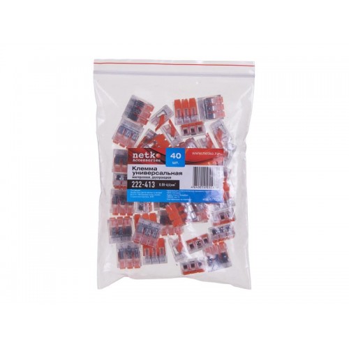57723 Клемма 223-413 многоразовая, универсальная, 3-проводная (0,14-4 мм2), 40шт., Netko