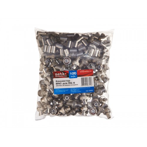 53452 Коннектор BNC для RG-6/SAT-703, цинк/медь, для обжимного инструмента, Netko
