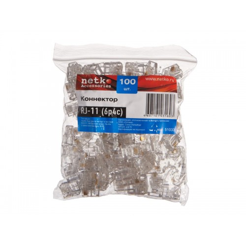 51033 Коннектор RJ-11 Netko (6p4c), (нож с 2-мя зубцами), 100шт.
