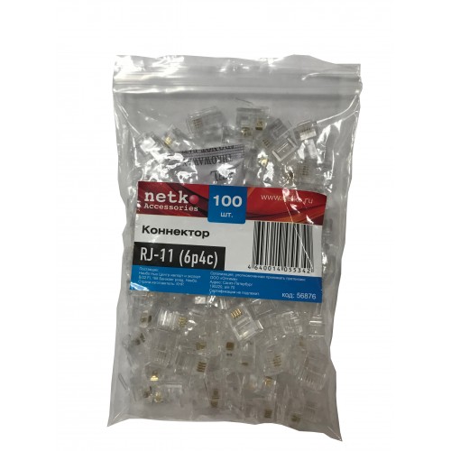 56876 Коннектор RJ-11 Netko (6p4c), (нож с 2-мя зубцами), 100шт. A