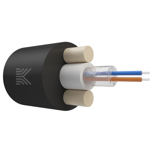 65893 КОСТРОМАКАБЕЛЬ КОС-ОКД-2х657-ТП-1.5кН Дроп-кабель круглый, с центральной трубкой, усилен стеклопрутками, 2 волокна, SM 9/125, G.657.A1, полиэтилен, 1.5 кН
