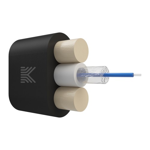 65921 КОСТРОМАКАБЕЛЬ КОС-ОКДП-1х657-ТП-2.4кН Дроп-кабель плоский, с центральной трубкой, усилен стеклопрутками, 1 волокно, SM 9/125, G.657.A1, полиэтилен, 2.4 кН