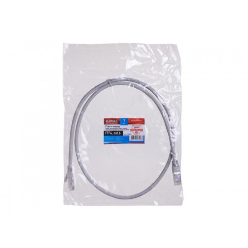 53865 Патч-корд Netko СКС FTP4 cat.6, 1.0м, литой коннектор, серый