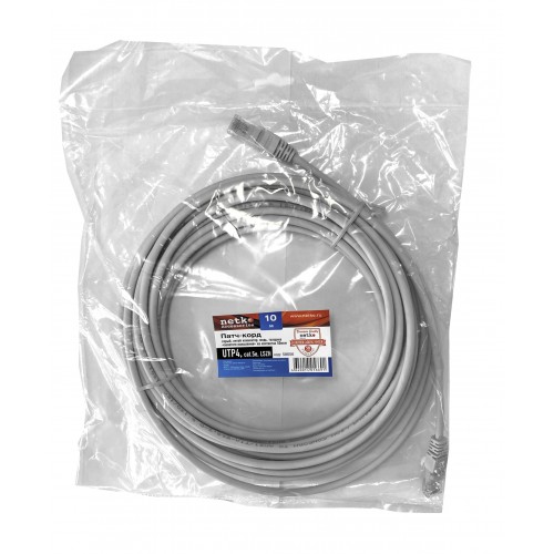 58656 Патч-корд Netko СКС UTP4 cat.5e, 10.0м, литой коннектор, серый, LSZH