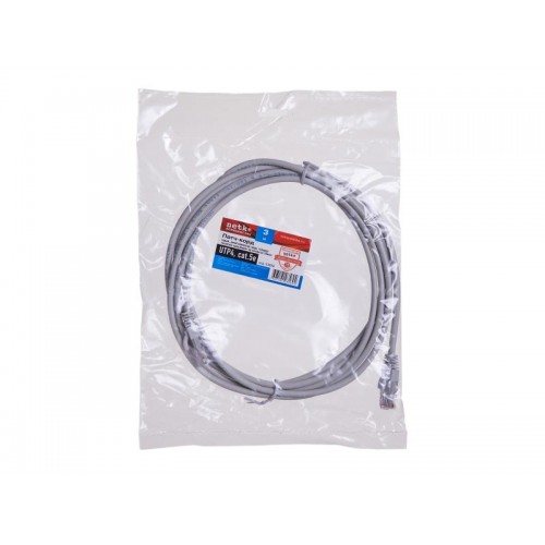 53838 Патч-корд Netko СКС UTP4 cat.5e, 3.0м, литой коннектор, серый