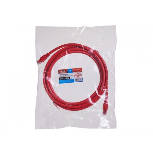 53902 Патч-корд Netko СКС UTP4 cat.6a, 3.0м, литой коннектор, красный