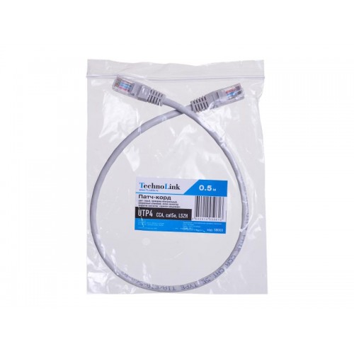 58003 Патч-корд Technolink C UTP4 cat.5е, 0.5м, CCA, LSZH, серый, литой коннектор