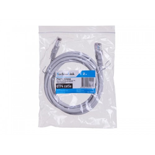 55989 Патч-корд Technolink C UTP4 cat.5е, 2.0м, CCA, серый, литой коннектор