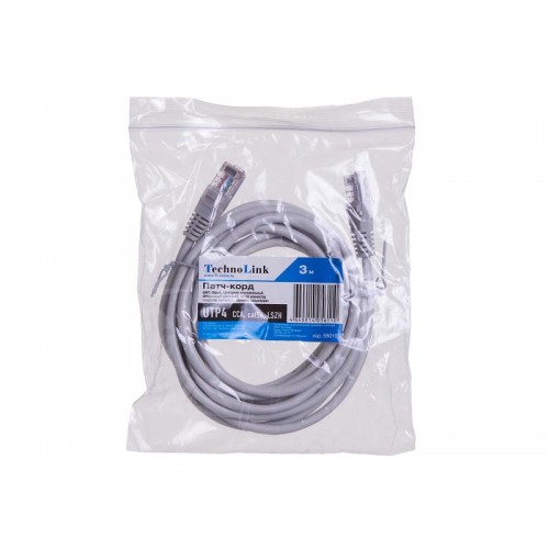 58010 Патч-корд Technolink C UTP4 cat.5е, 3.0м, CCA, LSZH, серый, литой коннектор