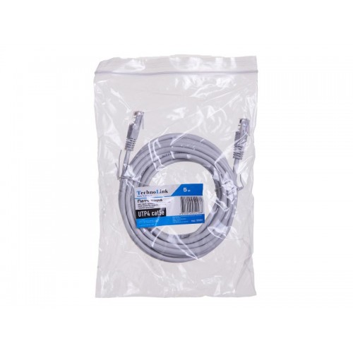 55991 Патч-корд Technolink C UTP4 cat.5е, 5.0м, CCA, серый, литой коннектор РАСПРОДАЖА