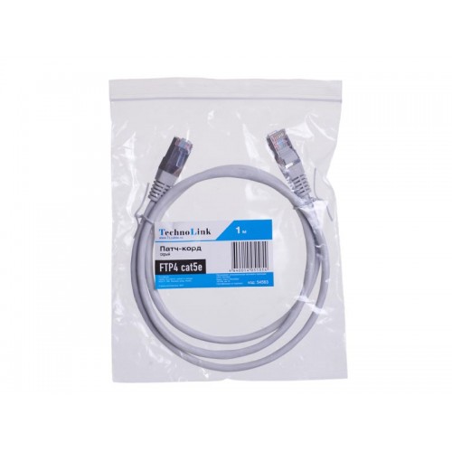 54563 Патч-корд Technolink FTP4 cat.5е, 1.0м, BC, серый, литой коннектор