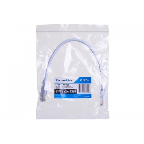 56993 Патч-корд Technolink UTP4 cat 5e, 0,25м, ВС, LSZH, белый, литой коннектор
