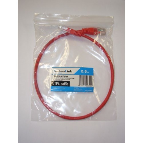 55840 Патч-корд Technolink UTP4 cat 5e, 0,5м, ВС, красный, литой коннектор