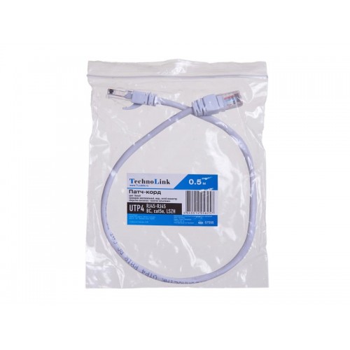 57095 Патч-корд Technolink UTP4 cat 5e, 0,5м, ВС, LSZH, белый, литой коннектор