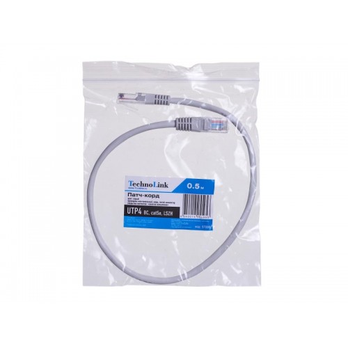 57099 Патч-корд Technolink UTP4 cat 5е, 0,5м, ВС, LSZH, серый, литой коннектор