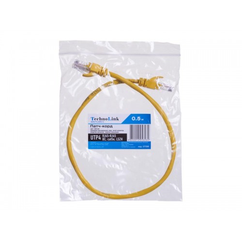 57096 Патч-корд Technolink UTP4 cat 5e, 0,5м, ВС, LSZH, желтый, литой коннектор