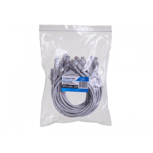 57106 Патч-корд Technolink UTP4 cat 5e, 1,0м, ВС, LSZH, серый, литой коннектор (упак 10)