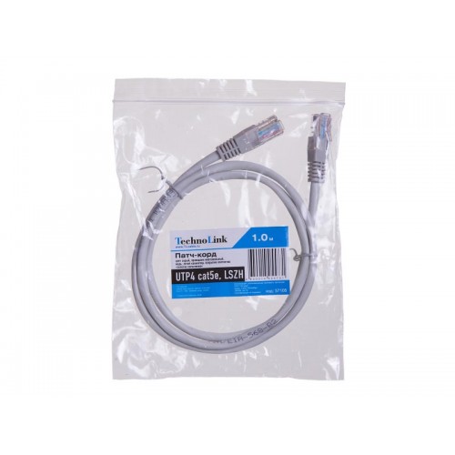 57105 Патч-корд Technolink UTP4 cat 5e, 1,0м, ВС, LSZH, серый, литой коннектор