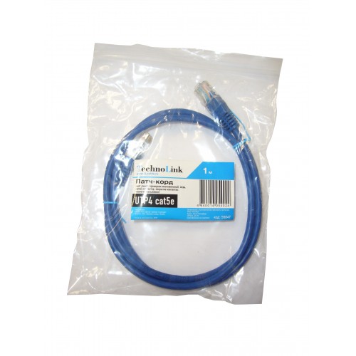 55847 Патч-корд Technolink UTP4 cat 5e, 1,0м, ВС, синий, литой коннектор РАСПРОДАЖА