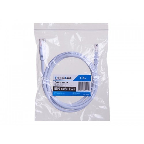 56999 Патч-корд Technolink UTP4 cat 5e, 1,5м, ВС, LSZH, белый, литой коннектор