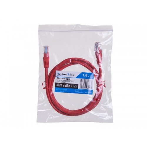 57002 Патч-корд Technolink UTP4 cat 5e, 1,5м, ВС, LSZH, красный, литой коннектор