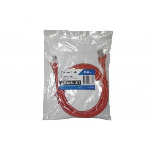 57113 Патч-корд Technolink UTP4 cat 5e, 2,0м, ВС, LSZH, красный, литой коннектор