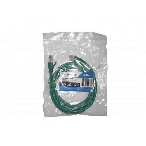 57112 Патч-корд Technolink UTP4 cat 5e, 2,0м, ВС, LSZH, зеленый, литой коннектор