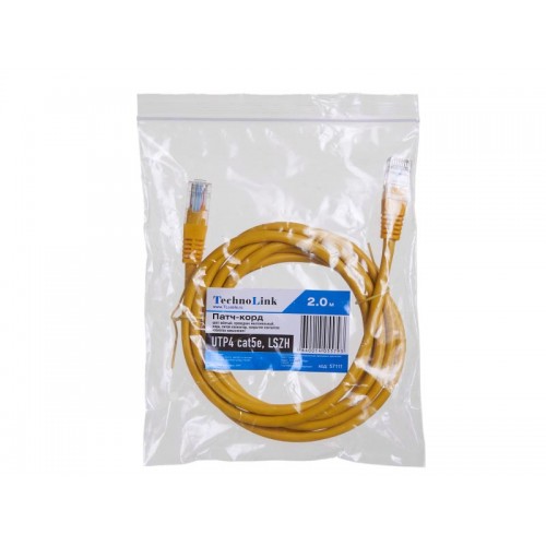 57111 Патч-корд Technolink UTP4 cat 5e, 2,0м, ВС, LSZH, желтый, литой коннектор