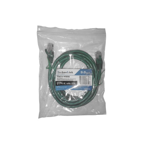 57118 Патч-корд Technolink UTP4 cat 5e, 3,0м, ВС, LSZH, зеленый, литой коннектор