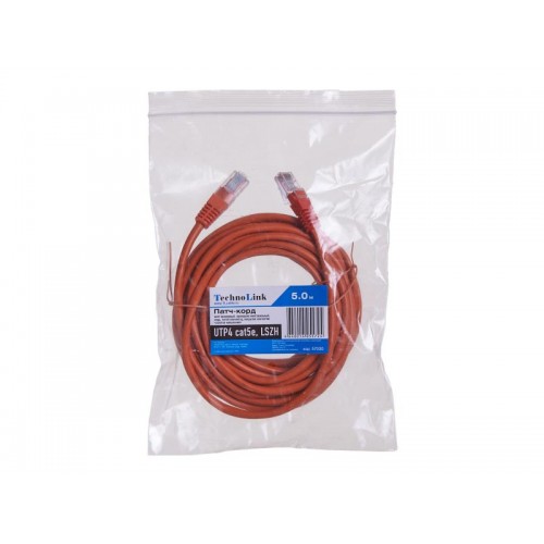 57030 Патч-корд Technolink UTP4 cat 5e, 5,0м, ВС, LSZH, оранжевый, литой коннектор