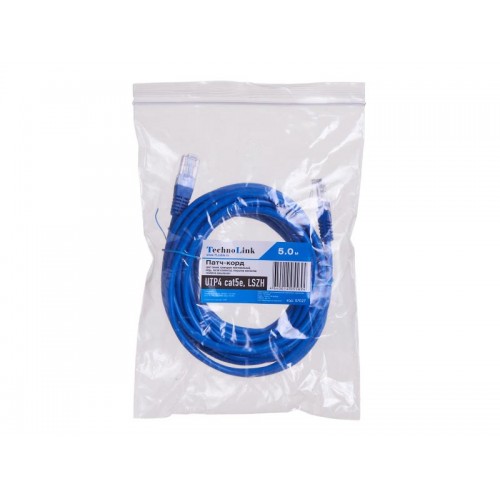 57027 Патч-корд Technolink UTP4 cat 5e, 5,0м, ВС, LSZH, синий, литой коннектор