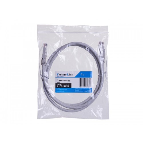 54577 Патч-корд Technolink UTP4 rj45-rj45, cat.6, 1.0м, BC, серый, литой коннектор РАСПРОДАЖА