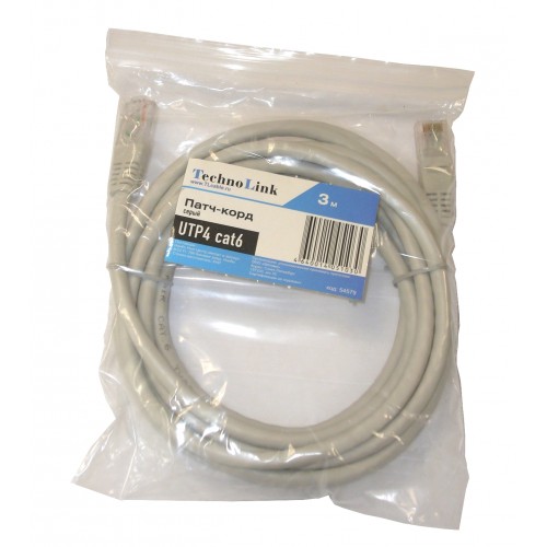 54579 Патч-корд Technolink UTP4 rj45-rj45, cat.6, 3.0м, BC, серый, литой коннектор