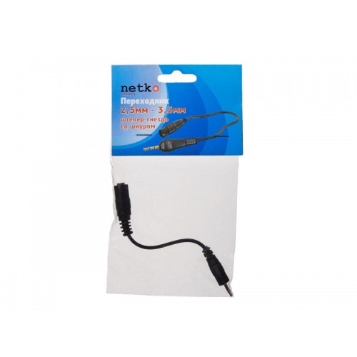 52564 Переходник гнездо 3,5 мм стерео - штекер 2,5 мм стерео, прямой, шнур 10 см, позолоченные контакты, Netko