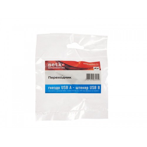 52037 Переходник гнездо USB A- штекер USB B, Netko, белый