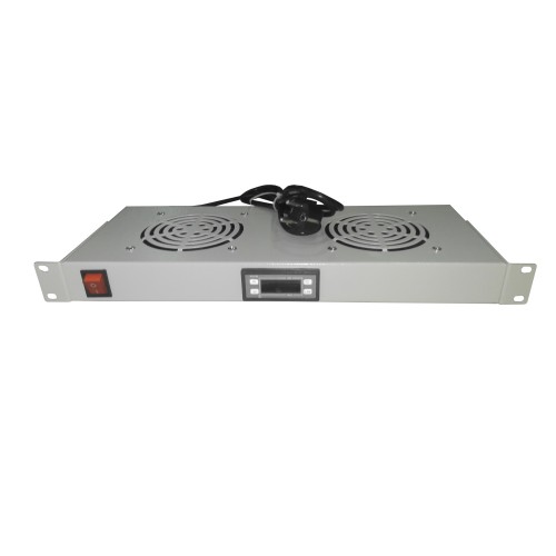 59913 Полка вентиляторная 19, 1U/2 с термостатом, с кабелем серая Netko