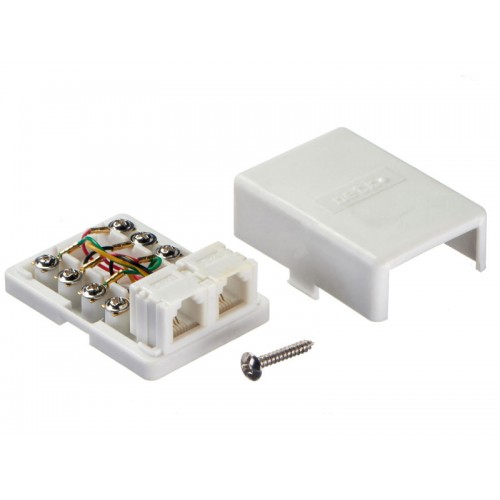 51048 Розетка телефонная внешняя / 2 порта RJ-11(6p4c) / 4 контактная, белая, Netko