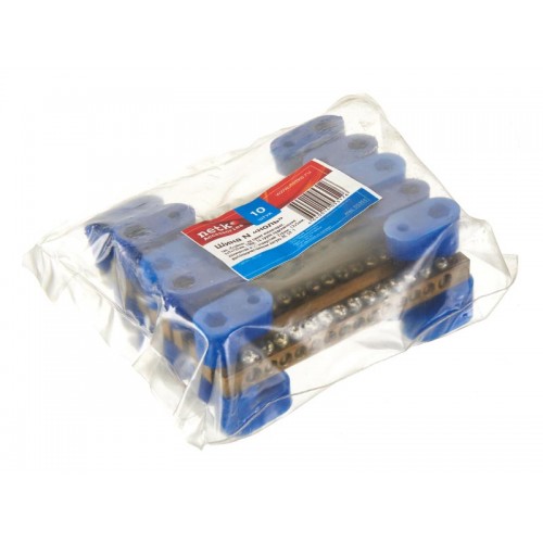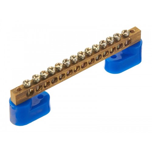 55355 Шина N ноль на 2-х изоляторах, тип Стойка, синий, 6х9мм, 14 групп, латунь