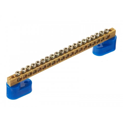 55356 Шина N ноль на 2-х изоляторах, тип Стойка, синий, 6х9мм, 20 групп, латунь