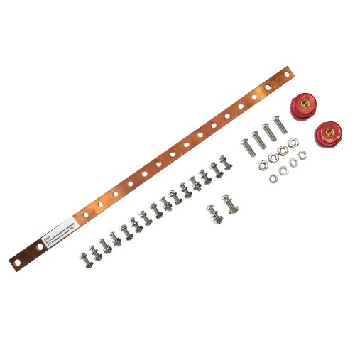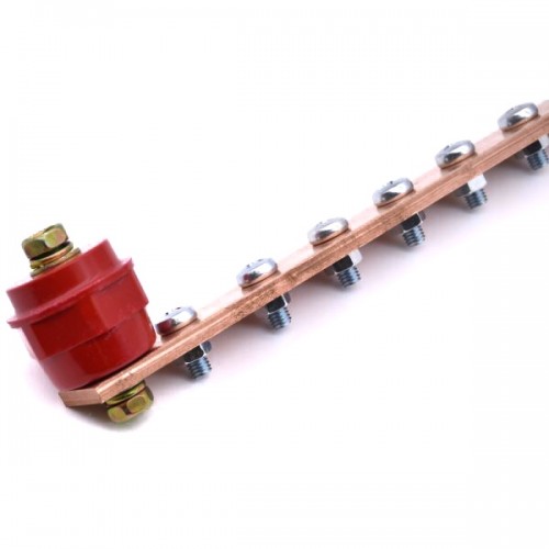 В комплекте: шина, 15 шт болтов М6 с шайбами и гайками, 6 болтов М8 с шайбами и гайками, 2 изолятора