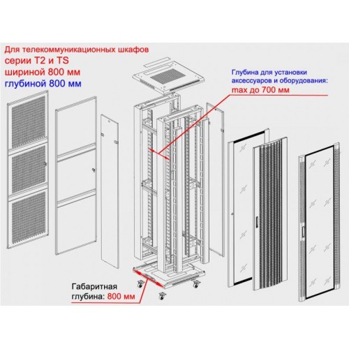 Глубина для установки аксессуаров и оборудования: max 700мм